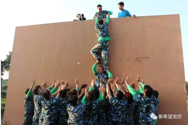 凝聚力--畢業(yè)墻,新希望小伙伴們的血淚史。隊員犯錯,隊長受罰。在我們的隊伍里面,總有著那么一兩個人不能按要求執(zhí)行,總犯著這樣或那樣的錯誤,生活中個人犯錯獨(dú)自承擔(dān),這是責(zé)任,自己對自己負(fù)責(zé);工作中一人犯錯領(lǐng)導(dǎo)受罰,或者全隊受犯,這是團(tuán)隊,領(lǐng)導(dǎo)對團(tuán)隊每一個人負(fù)責(zé)。四十多人的團(tuán)隊,經(jīng)過一次又一次的磨難,大家凝聚在一起,十一分鐘多全部翻越畢業(yè)墻,這是今天拓展最完美的收工。